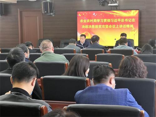 副局长张洪文同志传达了市脱贫攻坚会议精神,对农业系统存在三个问题进行剖析,并对近期农业农村系统脱贫攻坚工作的七个方面进行了详细部署。