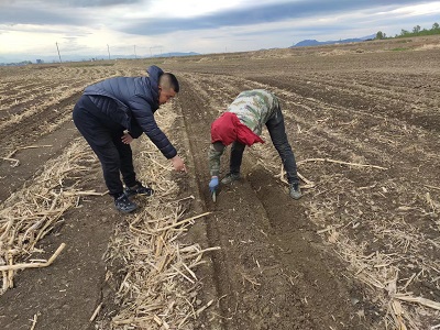 5月6日,珲春市农机技术推广站技术人员来到板石镇板石村玉米秸秆归行条耕播种作业地块,实地查看条耕地块播种作业机具性能、播种作业质量等情况。